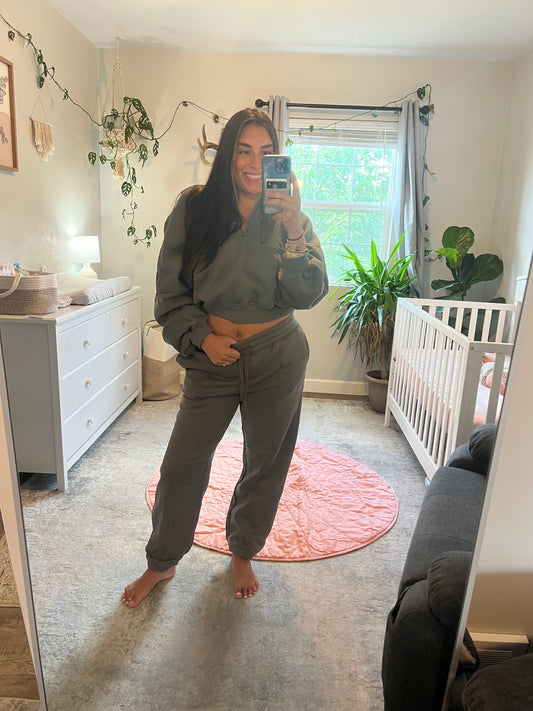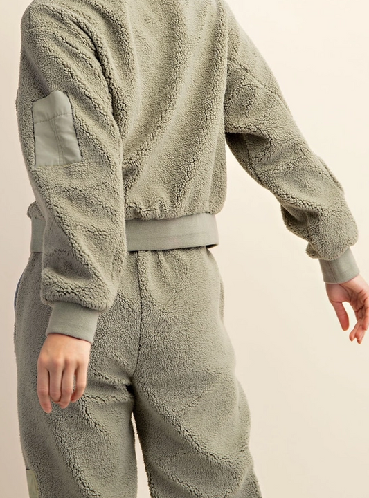 Sherpa Top and Sweatpants Set - Sage