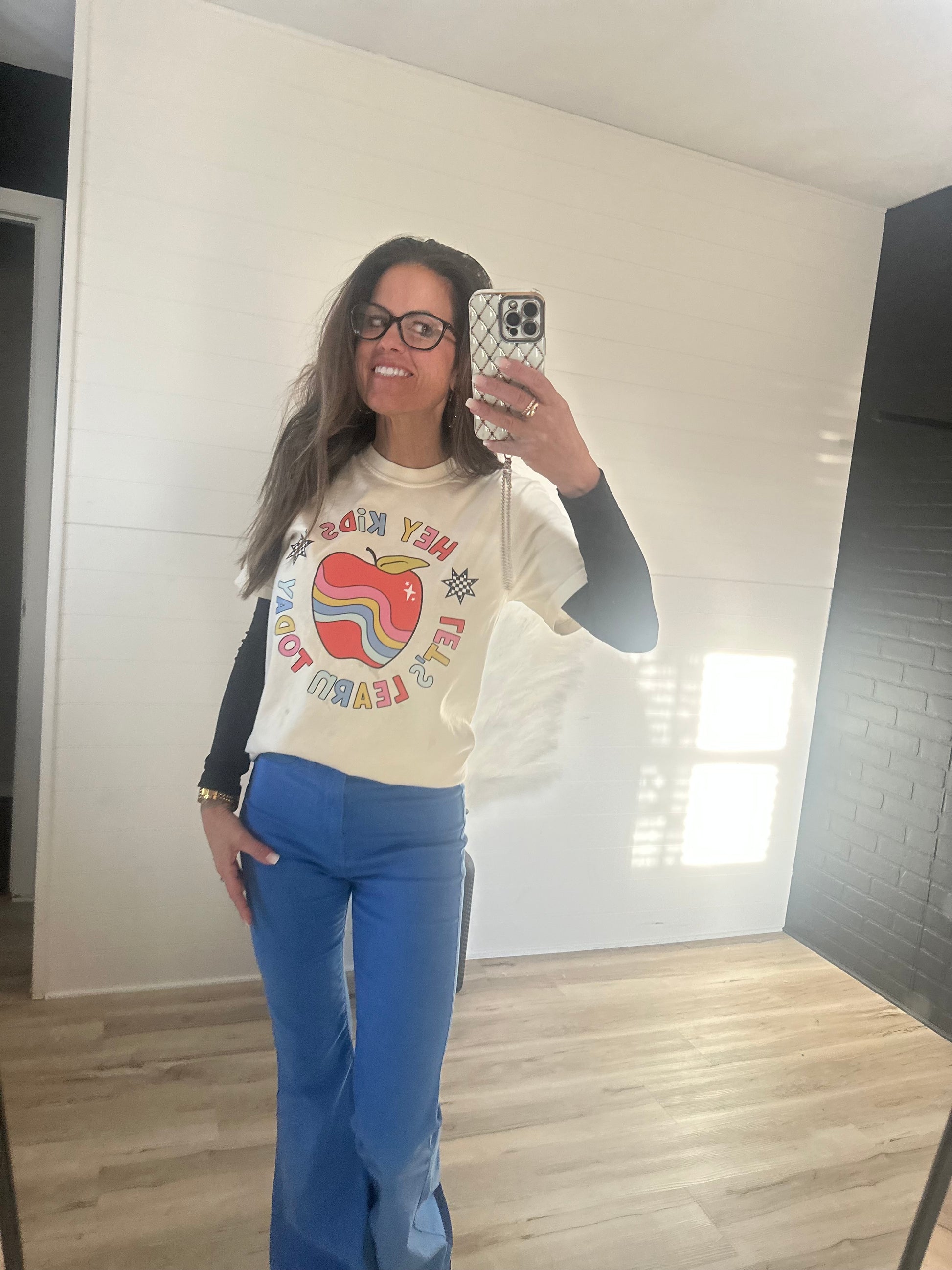Slim through the thigh and flared from knee to hem, these Cello jeans feature soft stretch denim, a flattering high-rise waist and a clean finished hem. 33” inseam. 54% lyocell, 33% cotton, 11% Elester'll-P, and 2% spandex.